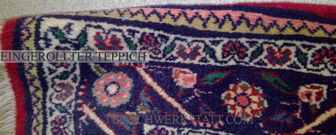 Ein handgeknüpfter Teppich besteht aus Hauptketten, Schlussketten und Knoten. Die Hauptketten werden auf einen Rahmen gezogen und bevor man den ersten Knoten knüpft werden einige Schussketten quer zwischen die Hauptketten eingezogen. Diese Arbeit nennt sich Kelim bzw. gewobene Reihen. Danach fängt man mit dem Teppichknüpfen an und nach jeder Knüpfreihe wird je nach Qualität und Provinz zwischen 1 bis 4 Schussketten eingezogen. Diesen Vorgang wiederholt man so lange bis der Teppich nach der Mustervorlage fertig geknüpft ist. Wenn man die Schussketten in jeder Reihe etwas stärker zieht, dann rollt sich der Teppich. Bei Nomadenteppiche kommt es auch häufig vor das diese sich rollen, wenn z.B. Schurwolle mit Ziegenhaar gemischt wird. Das komm daher, dass unterschiedliche Materialien verwendet werden. Am Häufigsten betroffen sind die Provinzen Bidjar, Nain, Gabeh, Sarugh, Ghom, Täbriz, Isfahan und Nomadenteppiche.