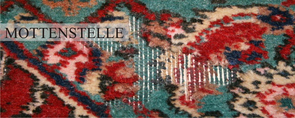 Mottenschäden können in unserer Fachwerkstatt so perfekt nachgeknüpft werden, dass von ihnen nichts mehr zu erkennen ist.